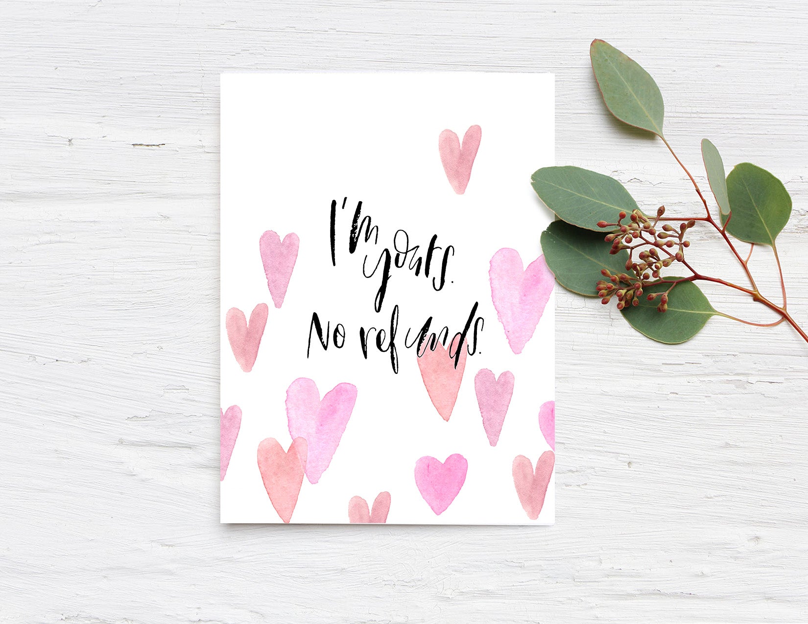 4.25"x5.5" folded white greeting card.