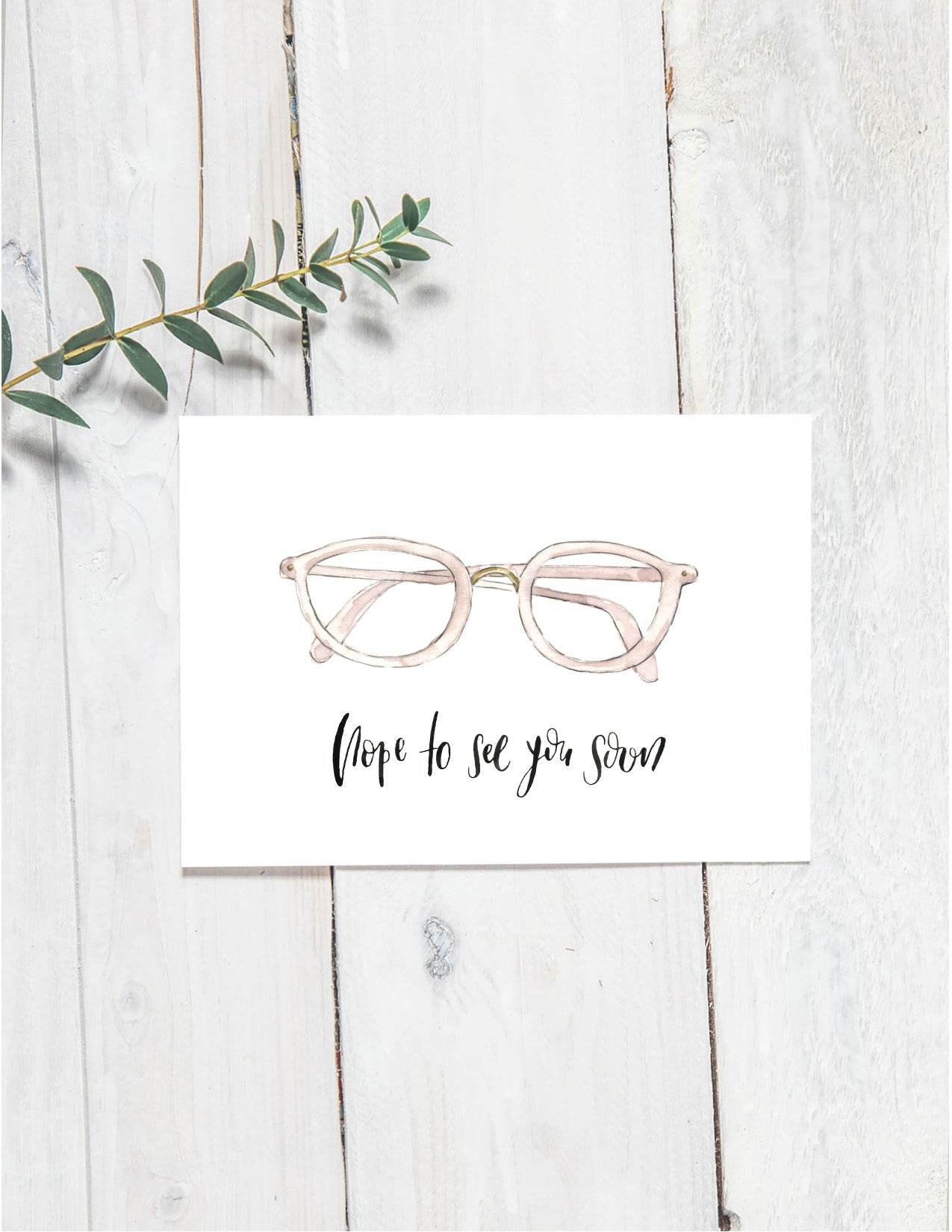4.25"x5.5" folded white greeting card.